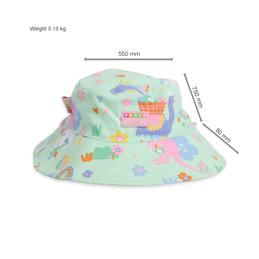 The hat is so cute with its colourful designs. I love the wide brim,perfect for Summer. The toggle fastener is great for keeping the hat on. Support Australian businesses