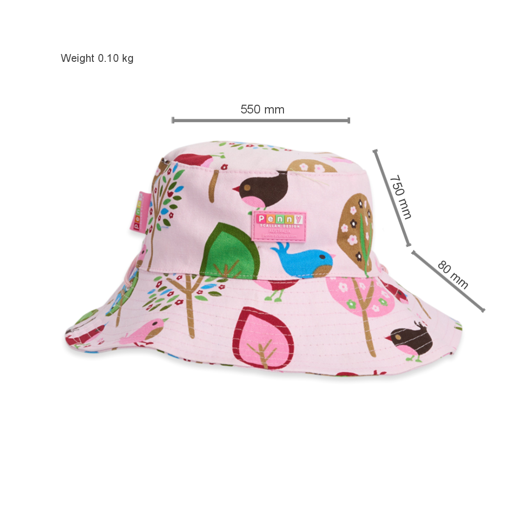 The hat is so cute with its colourful designs. I love the wide brim,perfect for Summer. The toggle fastener is great for keeping the hat on. Support Australian businesses