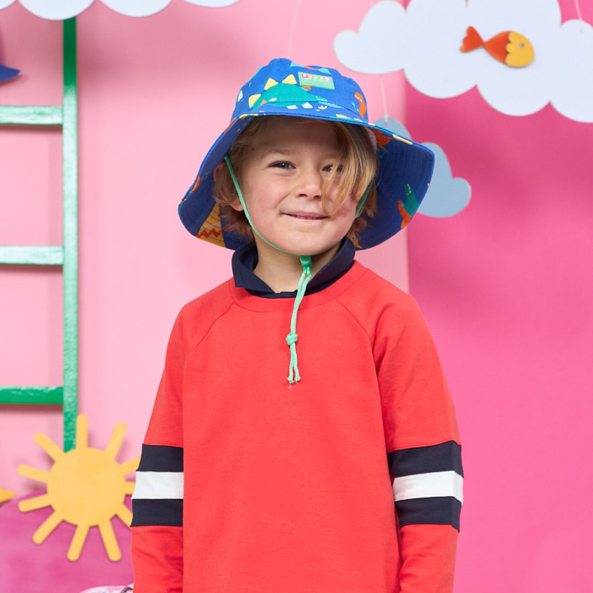I bought this sun hat for my grandson. Such a sweet design and colour. The extra wide brim is perfect for our Summer. The toggle tie is a great idea. Always amazing quality