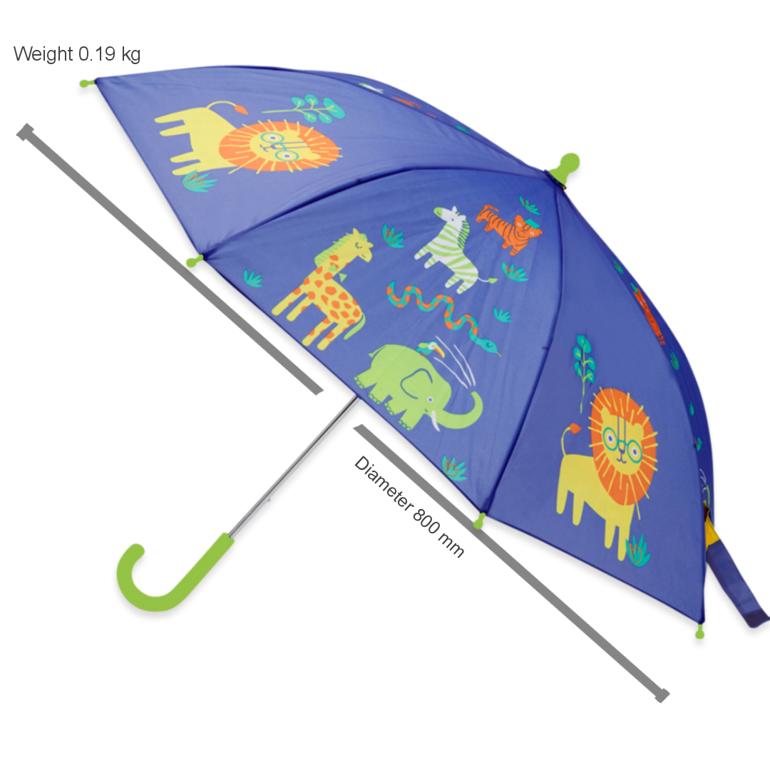 Rain, rain, go away, come again another day! Made with lightweight fibreglass spokes, a soft grip rubber handle, and a safety opening system to avoid pinching little fingers, our colourful Wild Thing umbrella for toddlers is the best accessory for cloudy weather. Make sure you pick up a matching Raincoat and Gumboots!